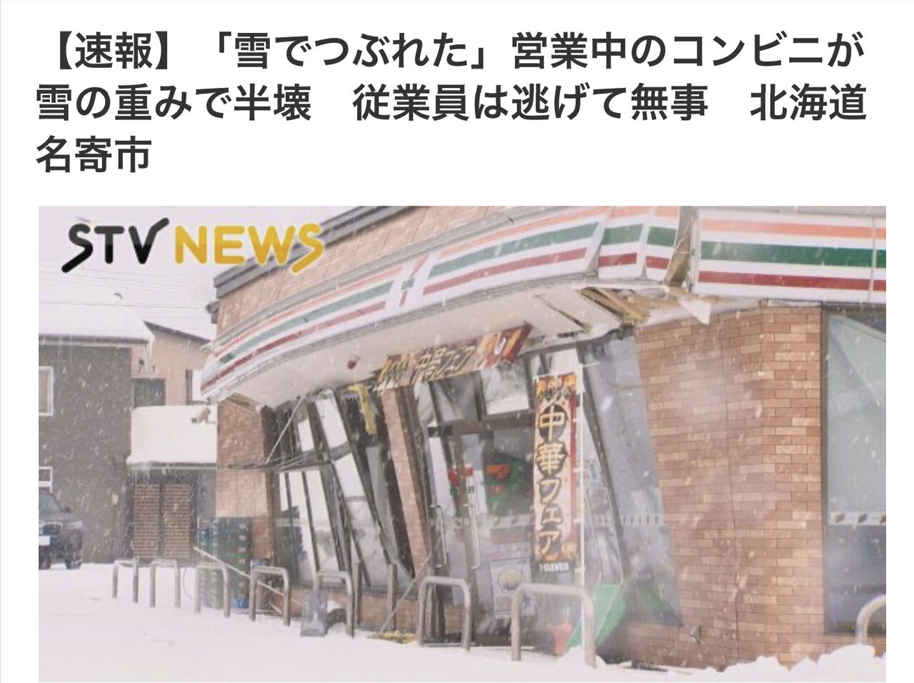 北海道なのに屋根に雪対策してないセブンのオーナーが悪いわ