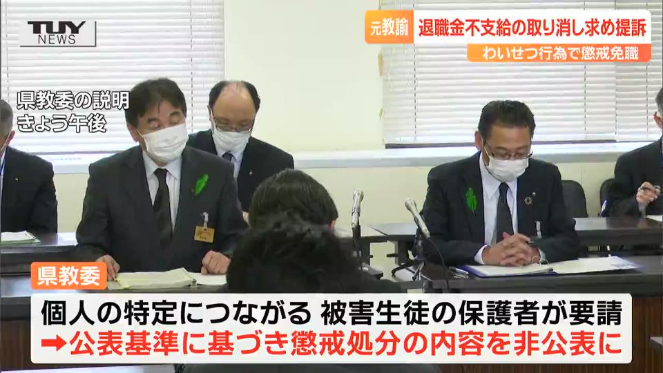 元教諭は、懲戒免職処分と同時に出された、およそ2000万円の退職金が支払われないという処分を不服として、今月6日付で山形地裁に提訴していました。
