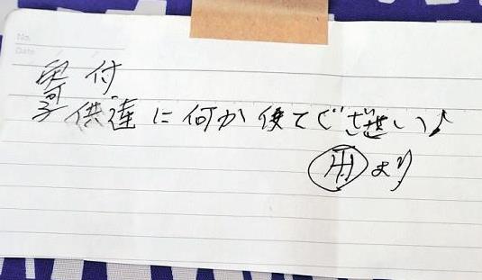 封筒が届いたのは阪神のセ・リーグ優勝から5日後の19日夕。郵便ポストに差出人が分からない封筒が入っていた。裏には「西成区」とだけ書かれ、中には現金50万円と手書きのメモがあり、「寄付 子供達に何か使(っ)てください」というメッセージに丸で囲んだ阪神のロゴが添えられていた。
