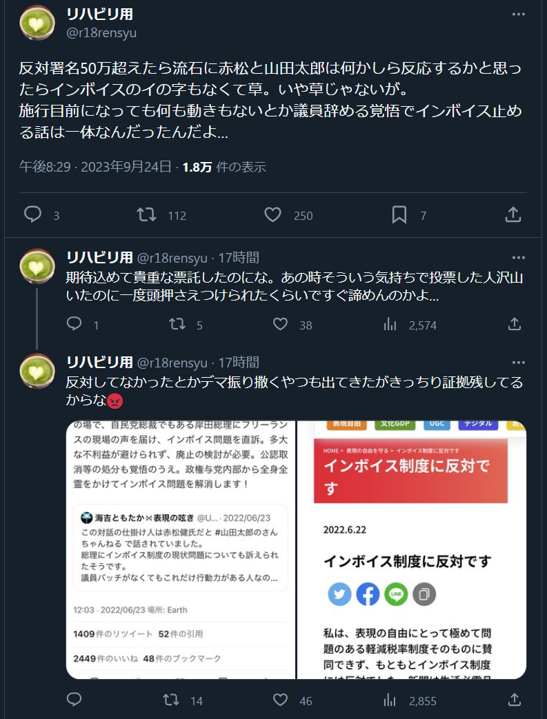 インボイスは必要と言ってた人を無視して