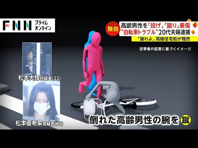 | 【独自】「謝れ、謝れ!」20代夫婦が高齢男性に暴行…夫が投げ飛ばし妻が蹴り上げ 東京・世田谷区の高級住宅街が ... - FNNプライムオンライン 【独自】「謝れ、謝れ!」20代夫婦が高齢男性に暴行…夫が投げ飛ばし妻が蹴り上げ 東京・世田谷区の高級住宅街が ... FNNプライムオンライン (出典:FNNプライムオンライン) |