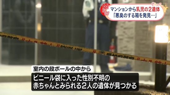 警察官が駆けつけると、部屋には段ボール箱が置かれていて、中にビニール袋に入った赤ちゃん2人とみられる遺体が見つかりました。遺体は腐敗していて、年齢や性別はわかっていません。