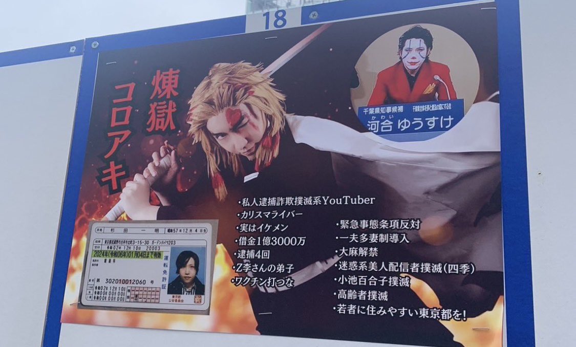 捜査関係者によりますと、来月7日投開票の都知事選に立候補している河合悠祐氏は、東京・新宿区のポスター掲示板などに「表現の自由への規制はやめろ」などと記載されたほぼ全裸の女性のポスターを貼っていたということです。
